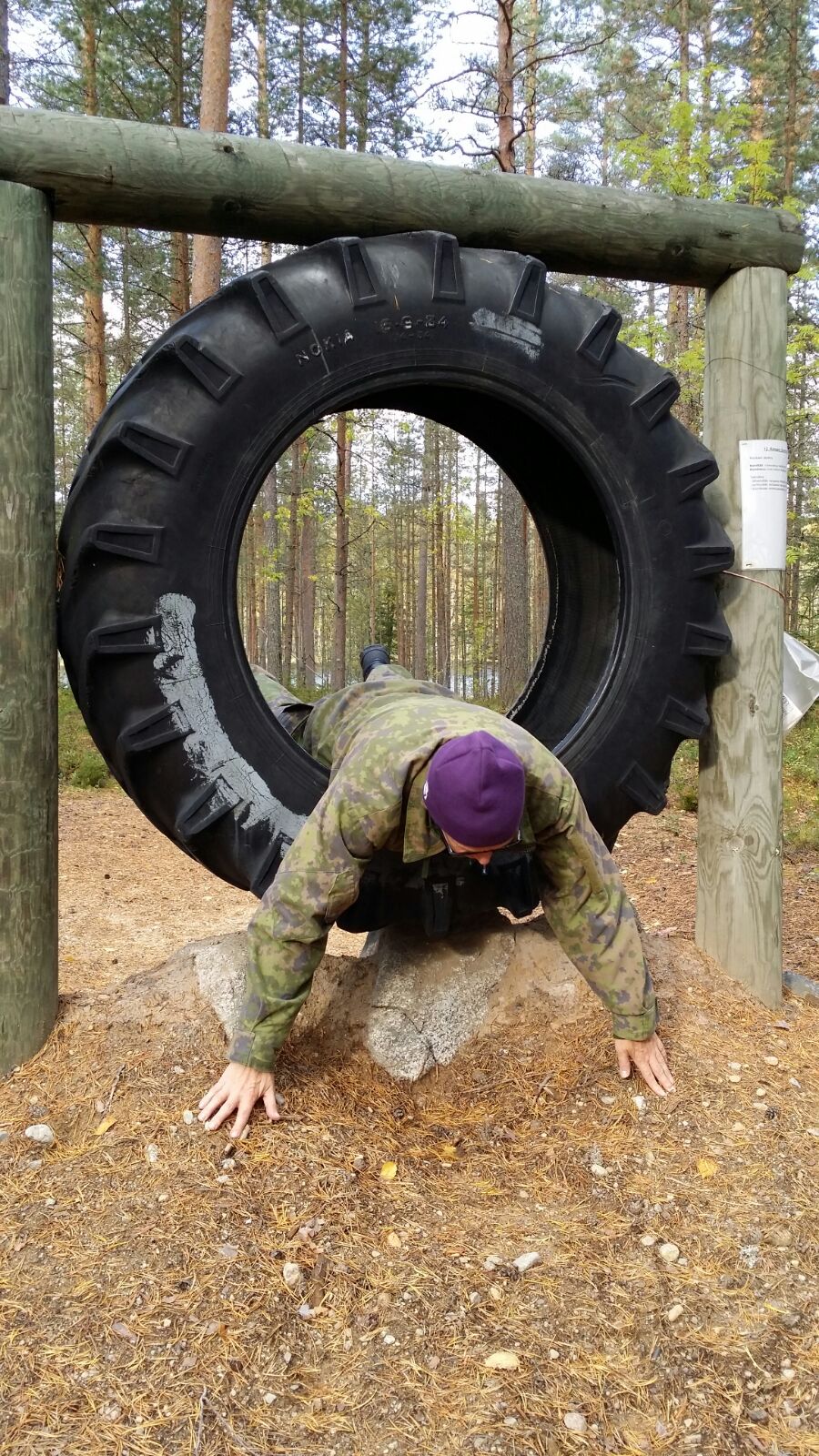 Maastotaidot-kurssilla tavoitteena on mm. kehittää valmiutta liikkua maastossa ja selviytyä luonnon olosuhteissa. Harjoittelimme esim. jokamiestaitoja, suunnistusta, solmujen tekoa, tulen tekemistä jne. Suoritimme myös alkusammutuskortin. Yövyimme puolijoukkueteltassa, kurssillamme oli n. 40 naista ja kolme telttaa. Tunnelma oli tiivis.